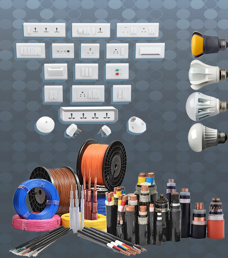 We deal in major electrical brands like Finolex, Anchor, Panasonic, Jaquar, Legrand, etc. We specialise in all types of AC HT & LT cables, Modular Switches, Modular switch accessories, LED Lights, MCBs, ELCBs, RCCBs and Distribution Boards.